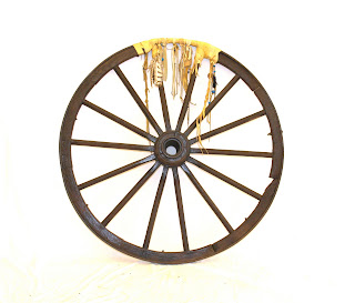 Decorative Western Wagon Wheel Embellished with American Indian Design  $750.00